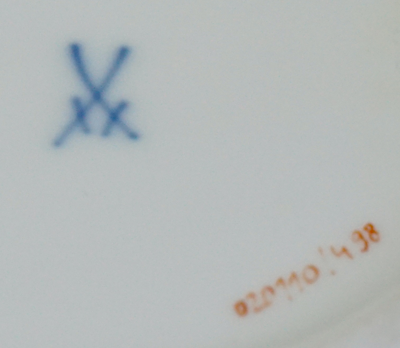 Höhe 6,5 cm. Unterglasur blaue schwertermarke. Guter unbeschädigter Zustand.
