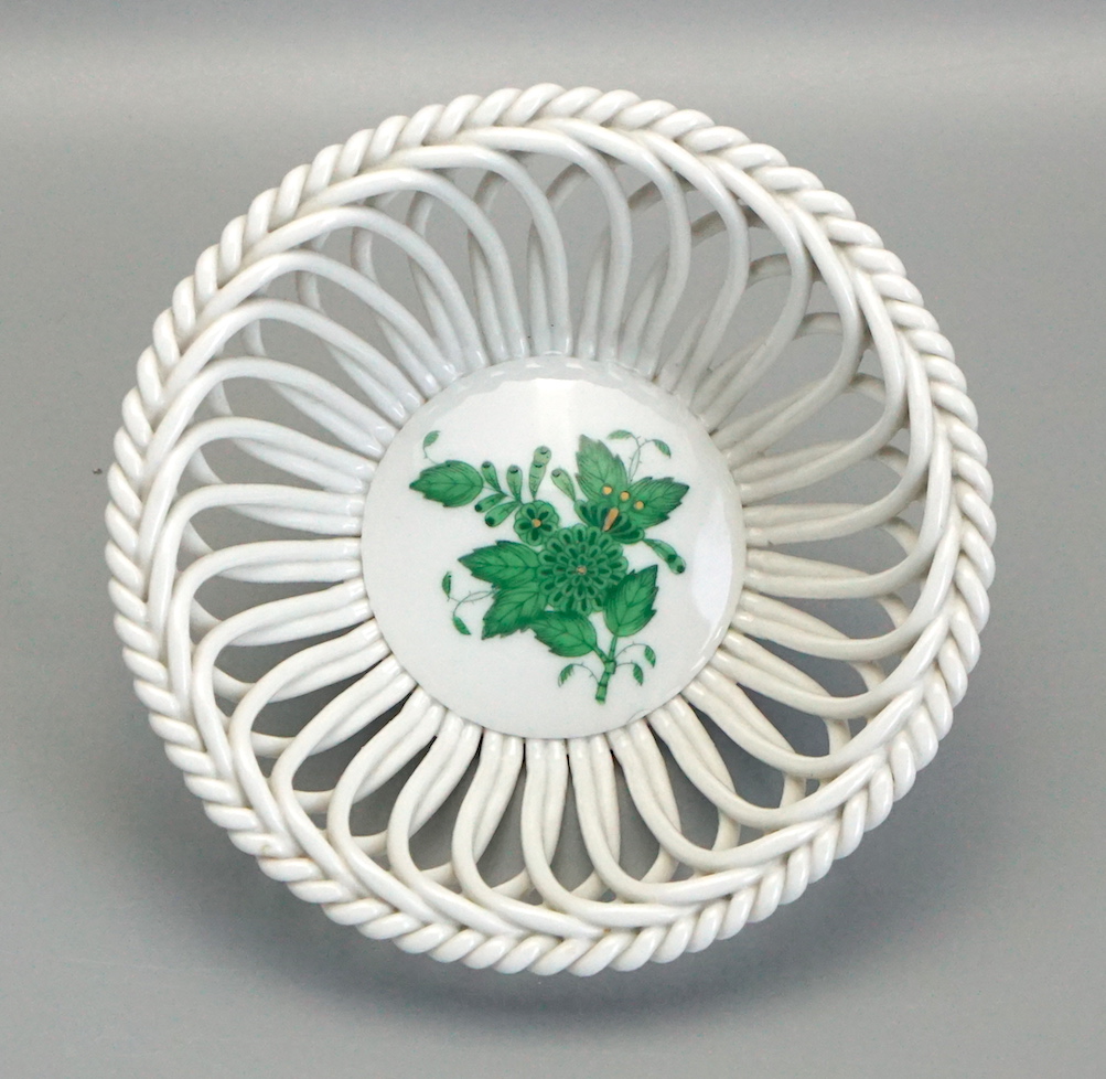 Herend Durchbruchschale 7372/AV. Dekor: Apponyi grün.