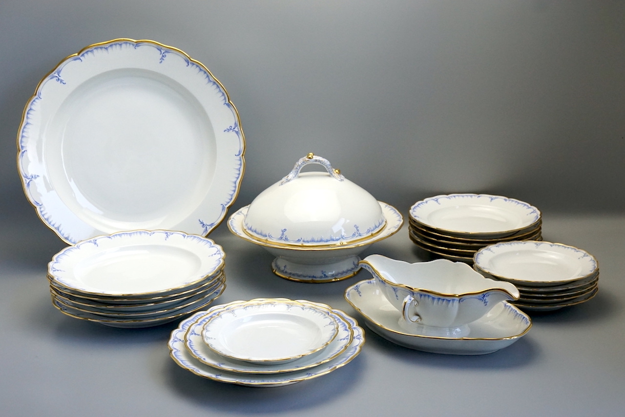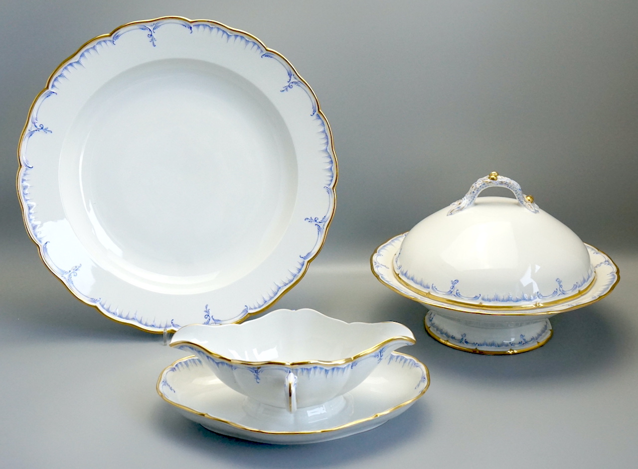 Kpm Berlin Speiseservice Neuglatt mit Goldrand.