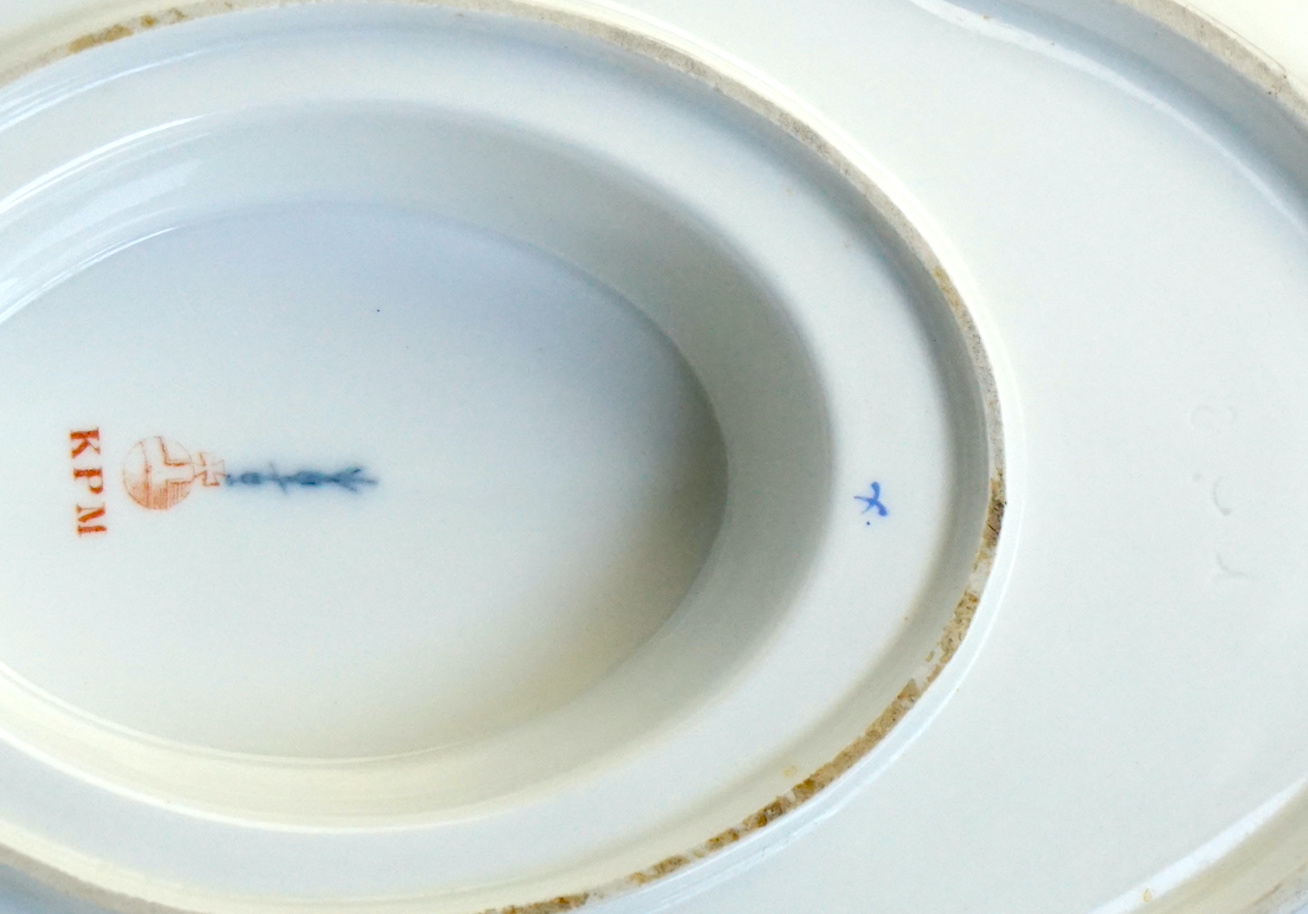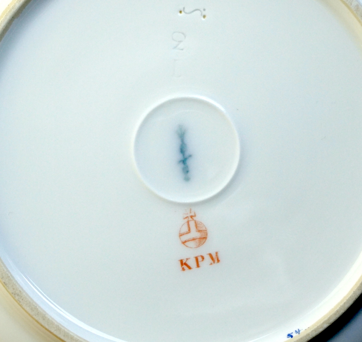 Unterglasur blaue Zeptermarke und Reichsapfel. Zustand: 6 kleine Teller mit Glasurabrieb rest mit minimale Gebrauchsspuren keine Beschädigung.