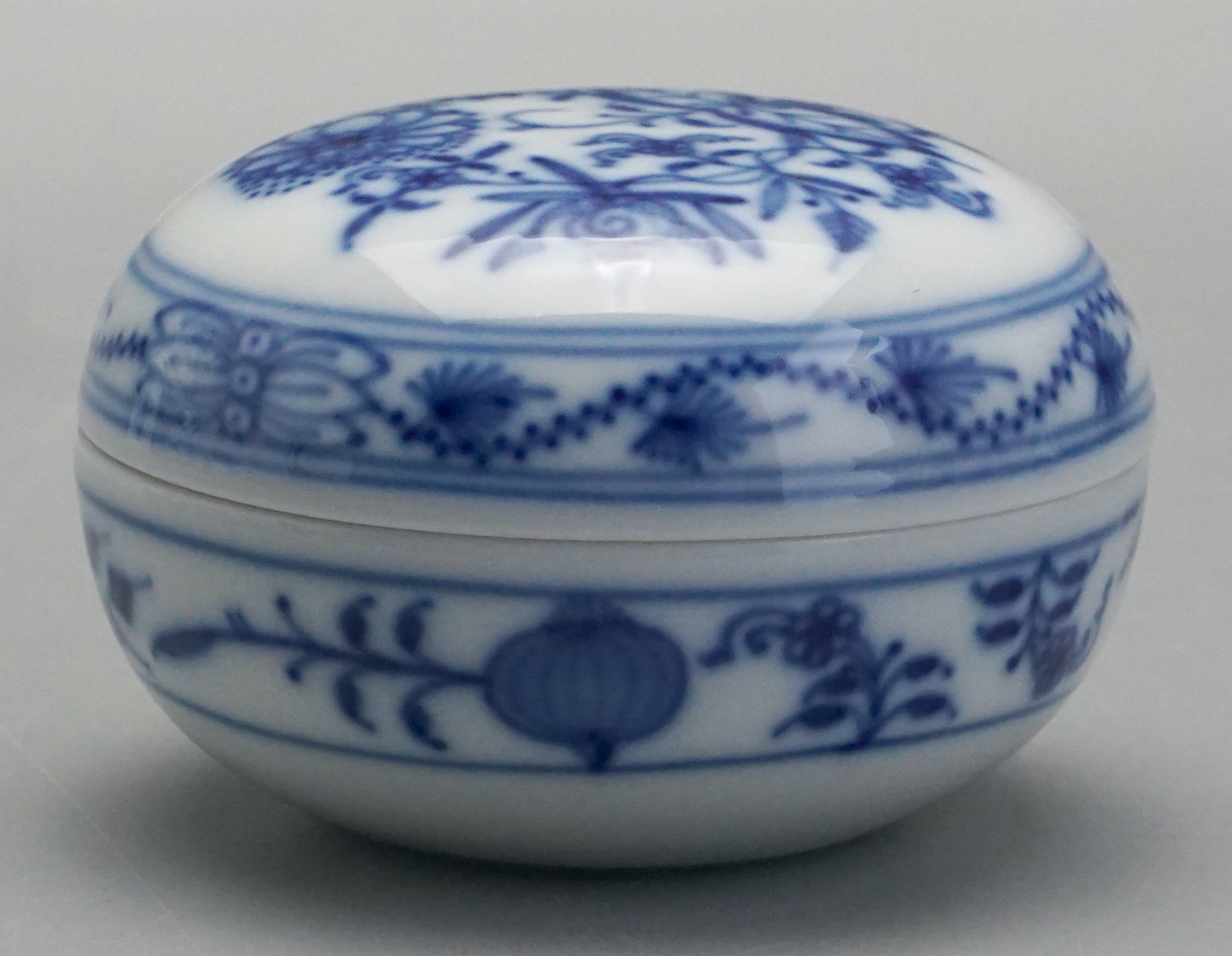 Deckeldose aus Meissener Porzellan. Dekor: Zwiebelmuster.