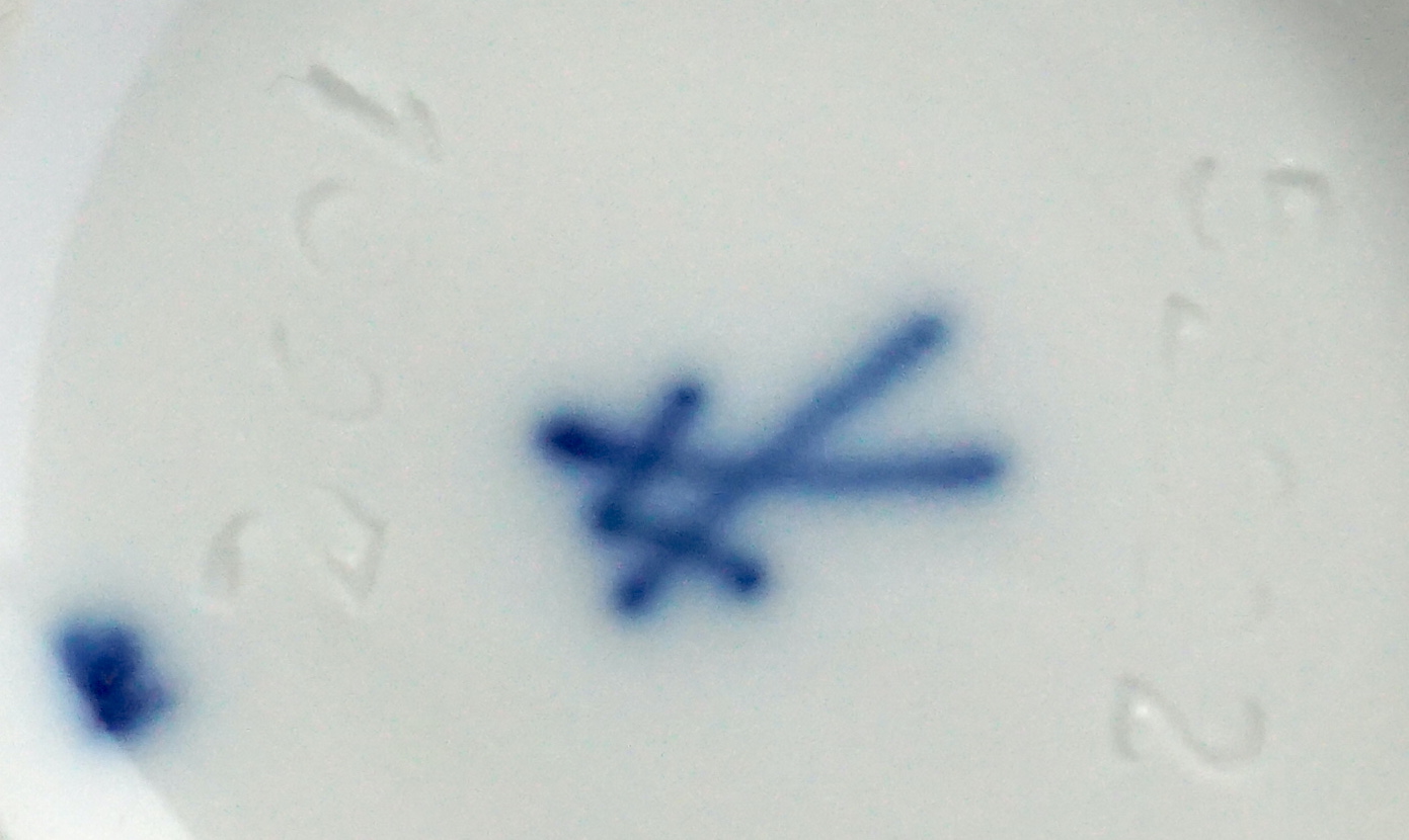 Höhe 5 cm, Durchmesser 6,2 cm. Unterglasur blaue schwertermarke 1 Wahl.