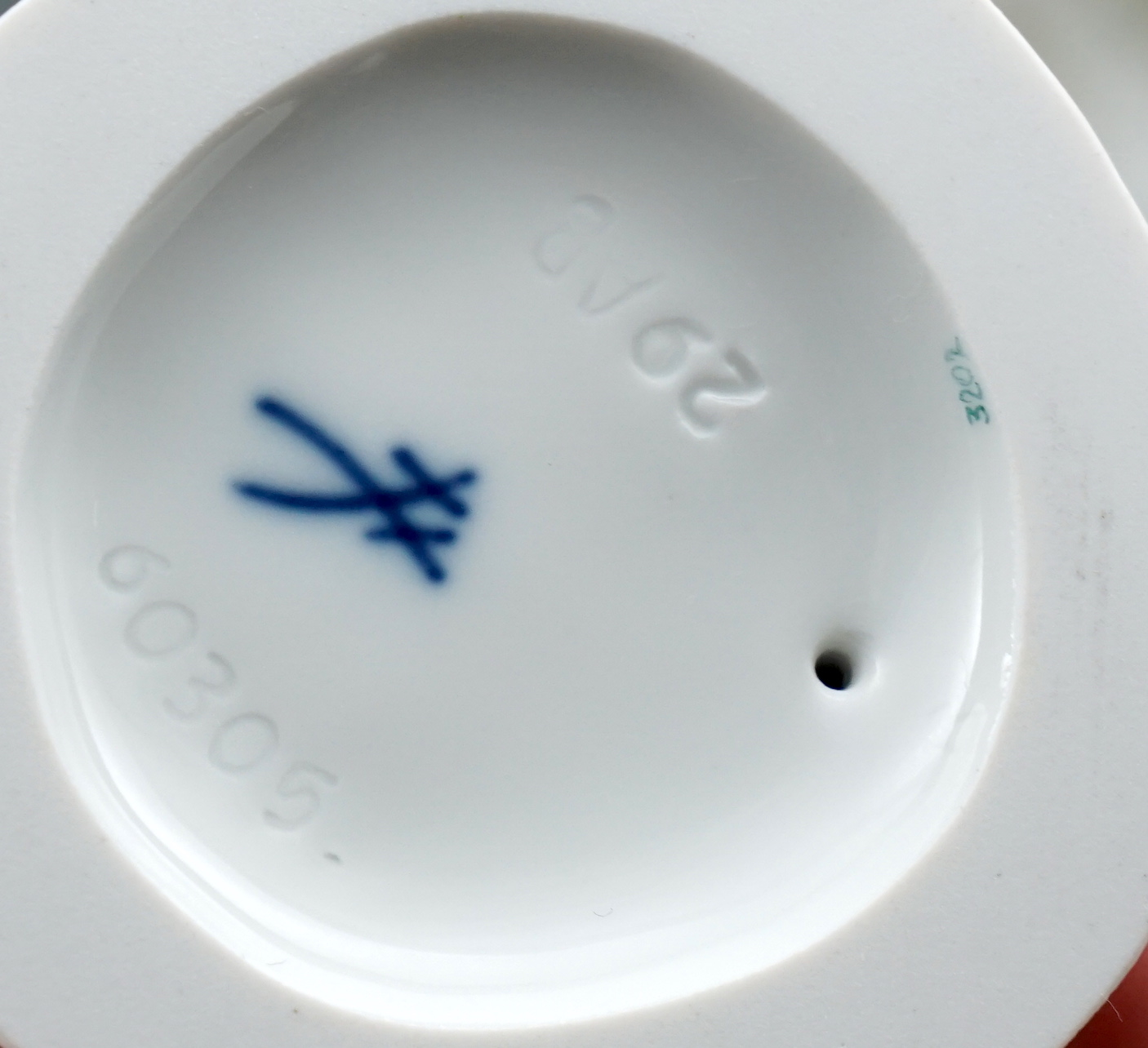 Höhe 13,8 cm. Unterglasur blaue Schwertermarke 1 Wahl.