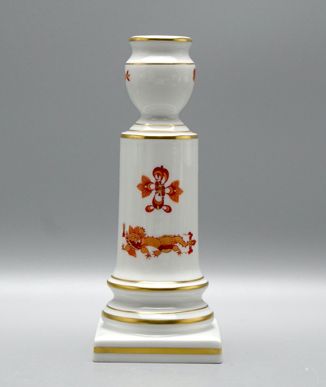 Kerzenleuchter aus Meissener Porzellan. Dekor: reicher roter Drache.