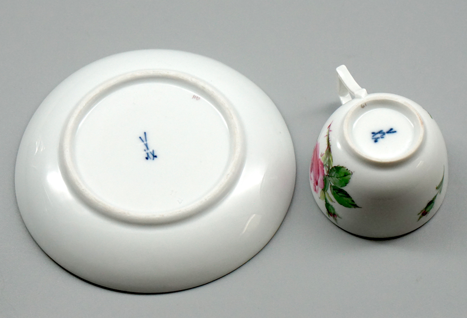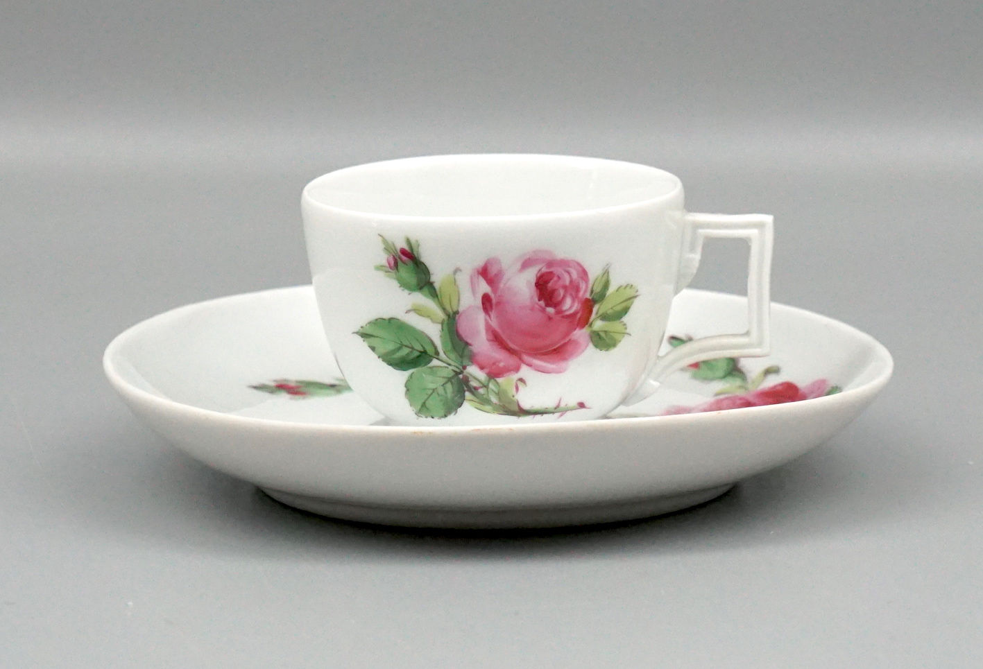 Meissen Moccatasse mit Untertasse Rote Rose, 1 Wahl.