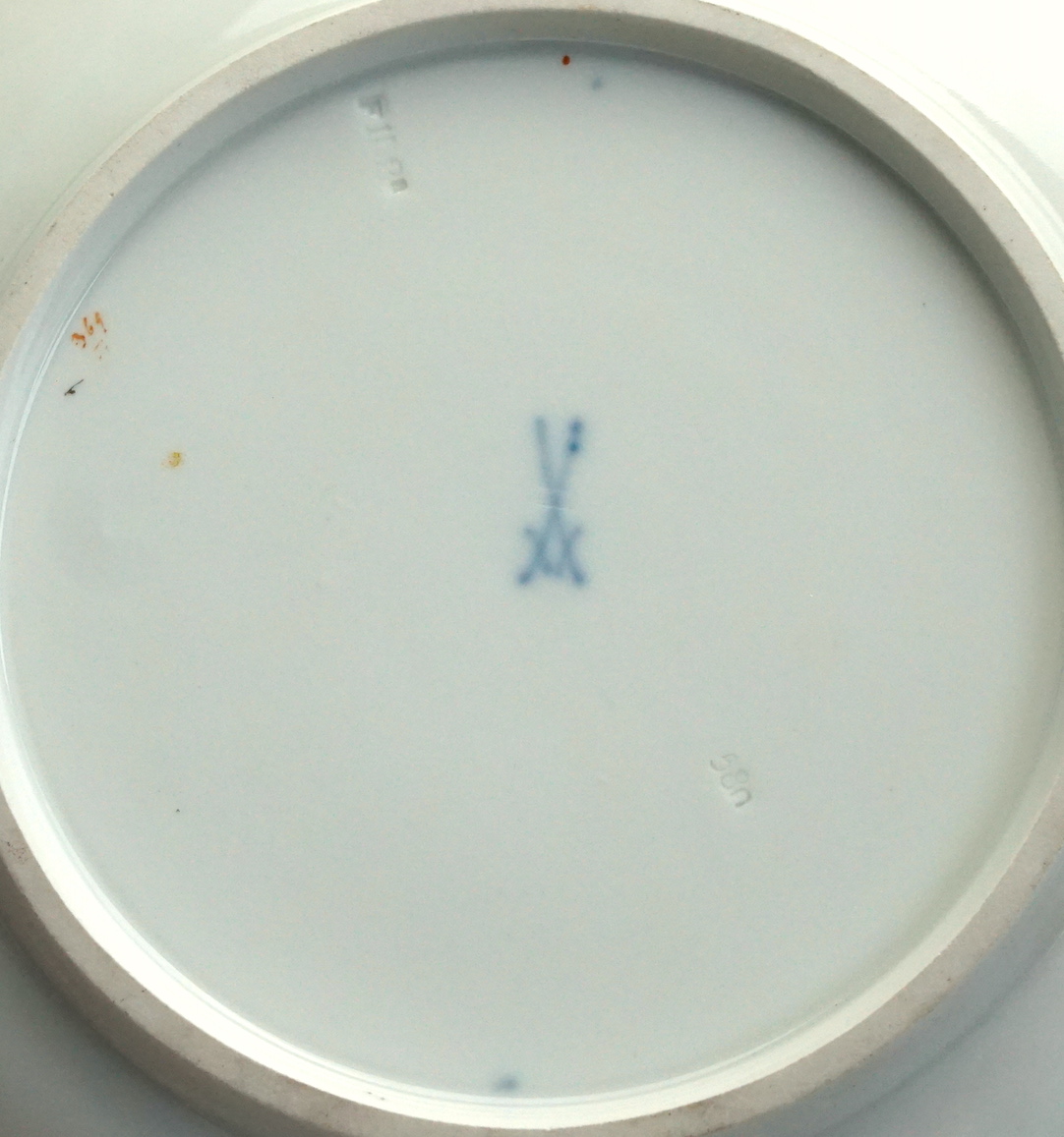 Durchmesser 30 cm, Höhe 4,8 cm. Unterglasur blaue schwertermarke 2 Wahl.