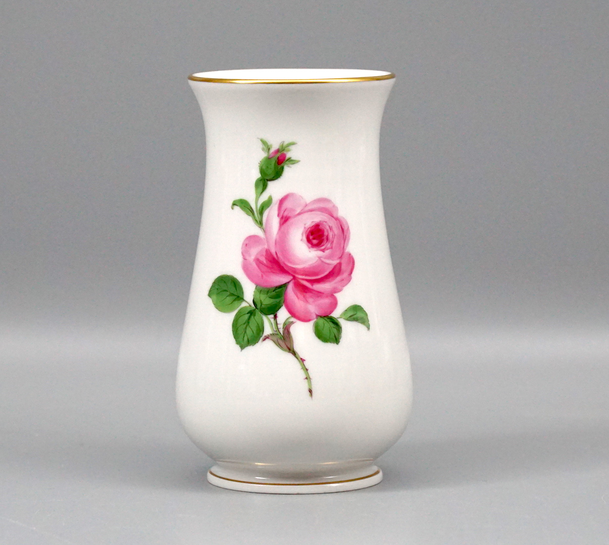 Vase aus Meissener Porzellan. Dekor: Rote Rose.