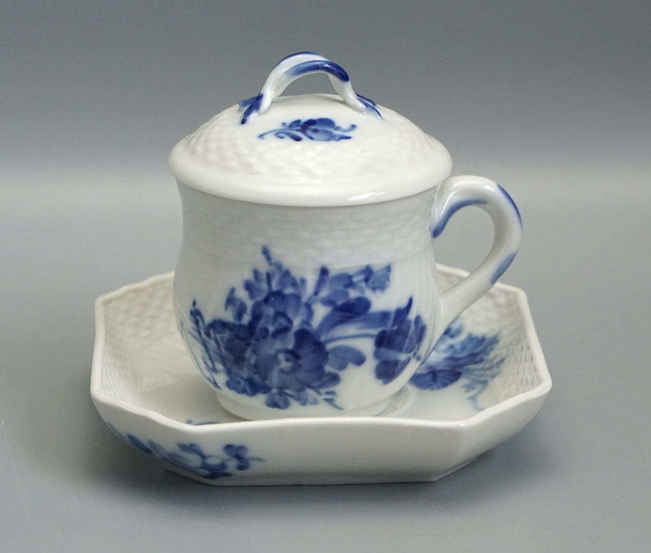 Royal Copenhagen Blaue Blume Tasse mit Untertasse & Deckel 1542/1594/1674.