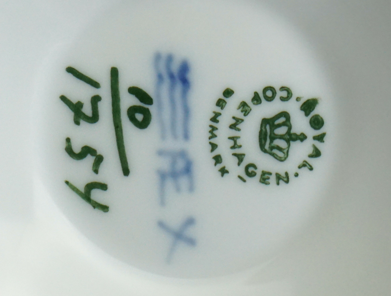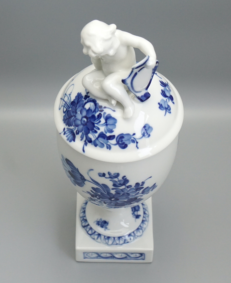 Royal Copenhagen Deckelvase Blaue Blume mit Putti.
