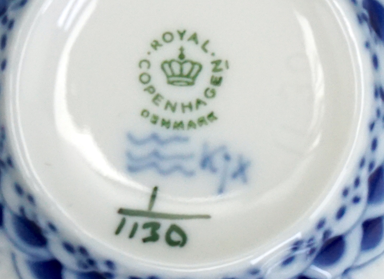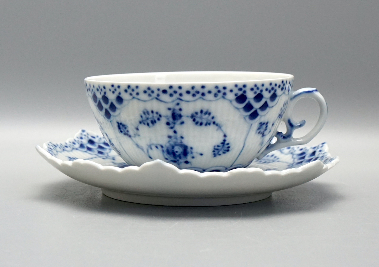 Royal Copenhagen Teetasse mit Untertasse Musselmalet Vollspitze.